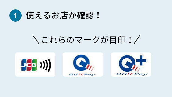 - ※QUICPayTMマークまたはQUICPay+TMマークがついているお店でご利用いただけます。