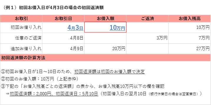 前月約定返済後のご利用残高に応じて返済金額を設定しております。