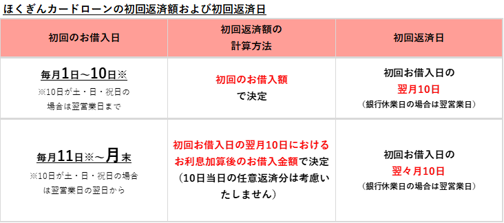 ご返済は、毎月10日(銀行休業日の場合は翌営業日)に返済用口座からお引き落とし。