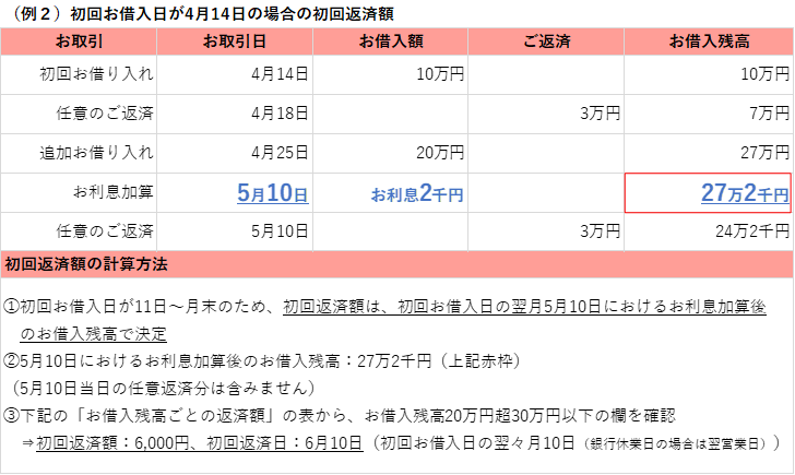 前月約定返済後のご利用残高に応じて返済金額を設定しております。